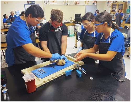 CTE Health Science Anatomy LabStudents in Mr. Juan A. Celedon's Anatomy & Physiology course have spent the month of January learning about the complexities of the Cardiovascular system. To put all their learning together, students had the unique opportunity to dissect a pig's heart and get an up-close view of how such a vital organ can function. The dissection part of learning is an excellent way for students to truly appreciate how intricate the heart is, something a textbook or video cannot always portray. Anatomy and Physiology is a required course within the health science pathway in the Career and Technical Education (CTE) program.